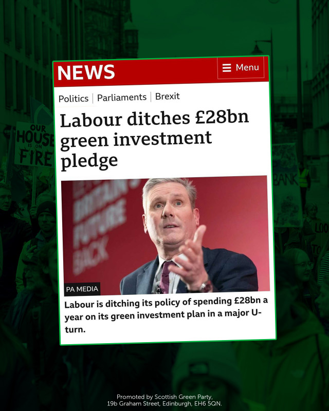 Labour leader Sir Keir Starmer’s choice to scrap a promised £28bn a year for tackling the climate crisis signals a catastrophic mistake, say the Scottish Greens.